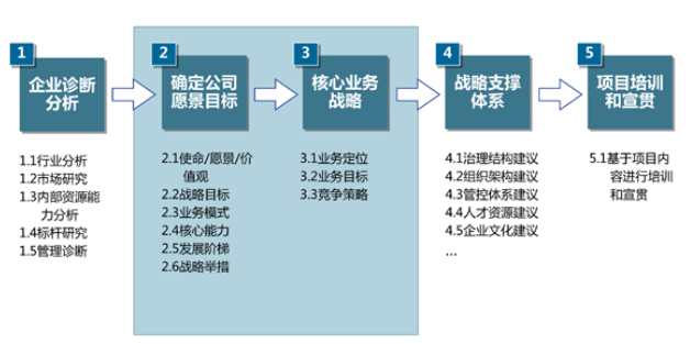 公司戰(zhàn)略,對(duì)公司經(jīng)營(yíng)狀況和未來(lái)發(fā)展趨勢(shì)進(jìn)行全面的分析,幫助客戶(hù)確定企業(yè)的核心業(yè)務(wù)并適時(shí)調(diào)整戰(zhàn)略,使得企業(yè)在新戰(zhàn)略的規(guī)劃下,能統(tǒng)率核心業(yè)務(wù),并提出必要性的組織結(jié)構(gòu)改善建議。"做什么""如何做""如何長(zhǎng)期地做"是我們思考的主要問(wèn)題,因此戰(zhàn)略?xún)?nèi)容和戰(zhàn)略管理成為主要服務(wù)重點(diǎn)。